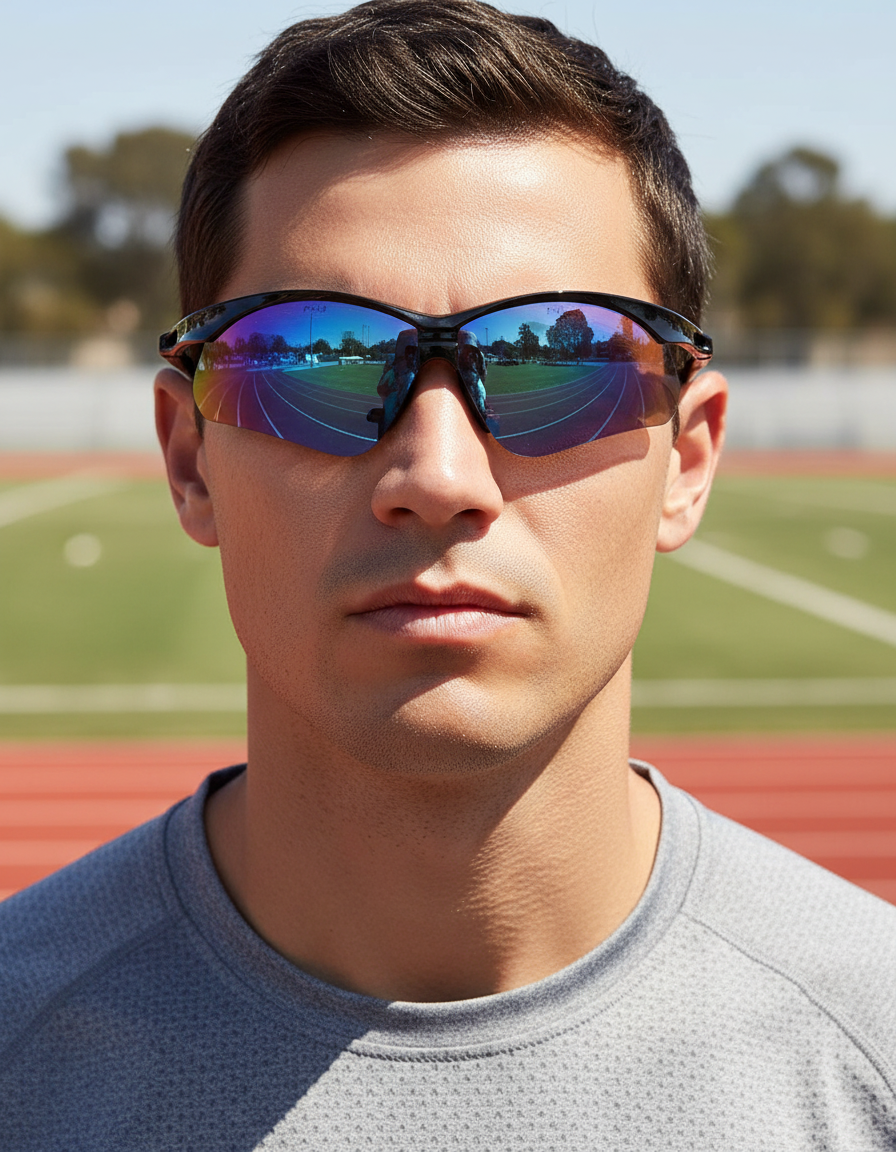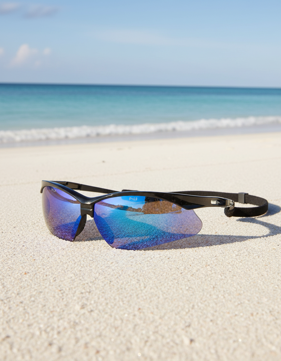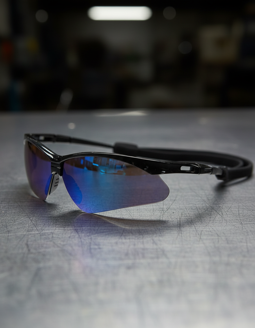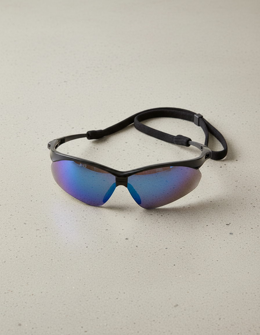 Modelo: PMXtreme – Lente Azul Espejado Protección UV: 99% Certificaciones: ANSI Z87.1 High Impact Requirements Incluye cable de cordón negro con puntas de goma para una mayor seguridad. Soportes de sien confeccionados en goma flexibles y ventilados. Puente nasal en goma ideal para uso prolongado y cómodo. Lente curva de base 9.0 en policarbonato proporciona completa protección lateral. Las lentes proporciona protección del 99% contra los rayos dañinos UV.