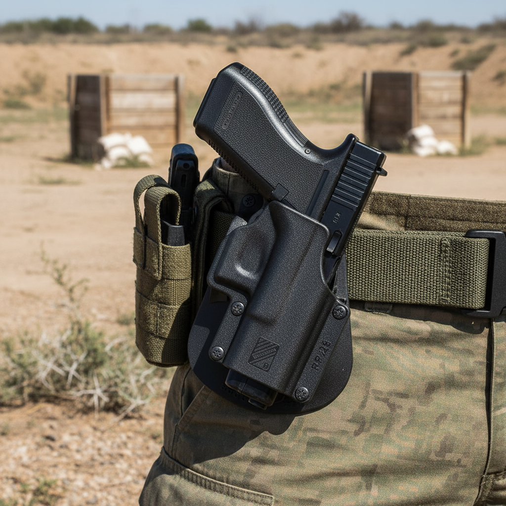 Línea de fundas para la portación diaria. Es de rápida colocación por medio de su paleta anatómica. Cuenta con el novedoso sistema de retención pasiva que logra un rápido y fácil desenfunde en situaciones de riesgo. Su interior se encuentra forrado para una mayor protección del arma. La confección es por medio de inyección de nylon, y los remaches son de bronce reforzados y pintados con pintura especial epoxi. Disponibles para todo tipo de armas cortas.