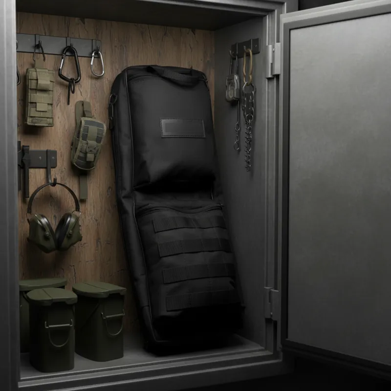 ADENTRO POSEE COMPARTIMIENTOS PARA CULATA Y CAÑÓN, UNO DE CADA LADO.