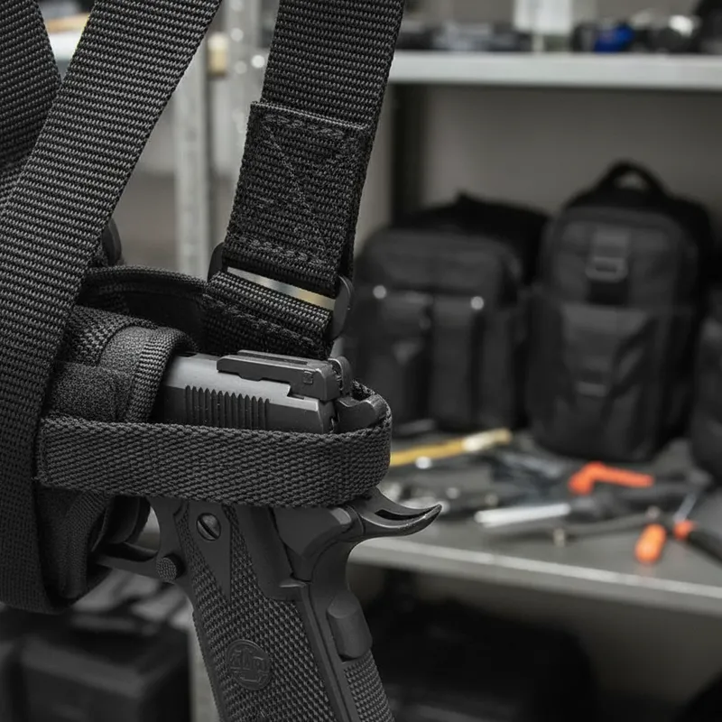Ideal para uso interior, esta sobaquera es perfecta para aquellos que necesitan tener su arma a mano en todo momento. Su diseño ambidiestro regulable permite que se adapte a cualquier usuario, independientemente de si es diestro o zurdo. La colocación es sencilla y se adapta al cuerpo mediante un regulador, proporcionando un ocultamiento óptimo y un ajuste personalizado para mayor comodidad. Está confeccionada con materiales sintéticos de alta resistencia, capaces de soportar un uso intensivo sin desgaste. Además, su interior está forrado para proporcionar una mayor protección a tu arma, evitando posibles arañazos o daños. Con esta sobaquera, puedes estar seguro de que tu arma estará siempre segura y lista para usar.